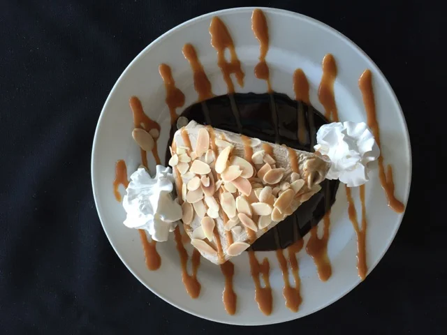 A Dryer’s Grand Ice Cream Pie with Coffee and Vanilla Ice Cream layers, a middle layer of fudge and a topping of roasted almonds and fresh whipped cream. An OREO Cookie crumb crust supports this massive decadence. A dessert great for sharing.