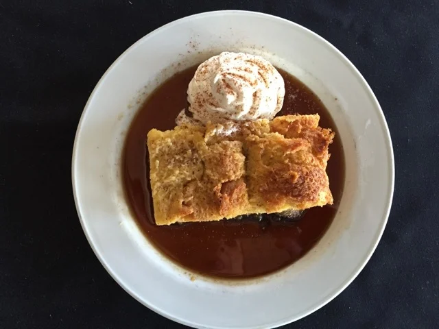 A simple, moist, back-to-the-basics bread pudding sweetened with brown sugar, pure maple syrup and vanilla and served warm with a dollop of fresh whipped cream.